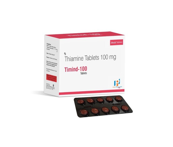 Composition : Thiamine 100 Mg (Vitamin B1 ) Packing : 20*10 Type : Blister Detail:-Timind 100 by Indizen Pharma – thiamine (Vitamin B1) 100 mg tablets to support energy metabolism, nerve function and overall nutritional health. Quality nutritional supplement.