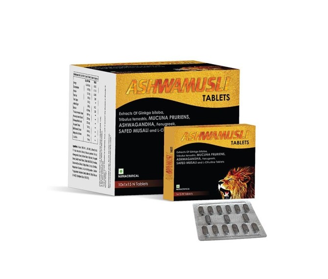Composition : Tribulus Terrestris Extract 500 Mg + Mucauna Pruriens Extract 250 Mg + Ashwagandha Extract 250 Mg + Fenugreek Extract 150 Mg + Safed Musli Extract 150 Mg Ginkgo Biloba Extract 60 Mg + L-citrulline 10 Mg Packing : 10*1*15 Type : BLISTER PACK Detail:-Buy Ashwamusli Plus Tablet by Indizen Pharma – a herbal supplement with Tribulus Terrestris, Mucuna Pruriens, Ashwagandha, Fenugreek, Safed Musli & Ginkgo Biloba for enhanced sexual wellness, stamina & vitality. Trusted quality by Indizen Pharma.