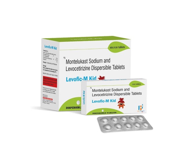 Composition : Levocetirizine 2.5 + Montelukast 4 Mg Dispersible Tablet Packing : 10*1*10 Type : Alu Alu Detail:-Levofic M Kid by Indizen Pharma – Pediatric oral suspension combining Levofloxacin and Montelukast for effective management of bacterial infections and respiratory conditions in children.