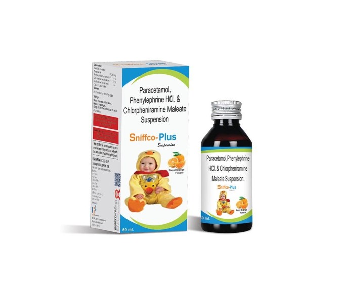 Composition : Pcm 250 Mg + Phenylephrine 5 Mg +cpm 2 Mg Syp Packing : 30*1 Type : Mono Pack 60 ml Detail:-Sniffco Plus by Indizen Pharma – Pediatric syrup for effective relief from cough, cold, and nasal congestion. Safe, fast-acting, and suitable for children.