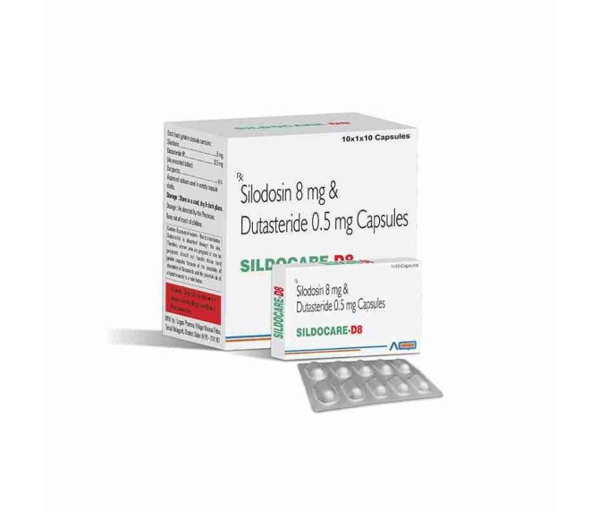 Composition : Silodosin 8 Mg + Dutasteride 0.5 Mg Packing : 10*1*10 Type : Alu Alu Detail:-Sildocare‑D8 for erectile support and delayed ejaculation. From Asto Care Pharma.