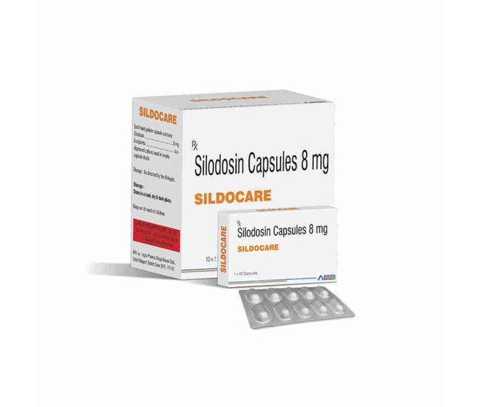 Composition : Silodosin 8 Mg Packing : 10*1*10 Type : Alu Alu Detail:-Sildocare 8 contains sildenafil 8 mg to support erectile function. Trusted quality from Asto Care Pharma.