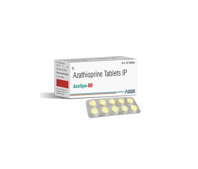 Composition : Azathioprinen 50 Mg Packing : 10*10 Type : Blister Detail:-Azolipe 50 tablet contains Azathioprine 50 mg, an immunosuppressant used to manage autoimmune conditions and prevent organ transplant rejection.