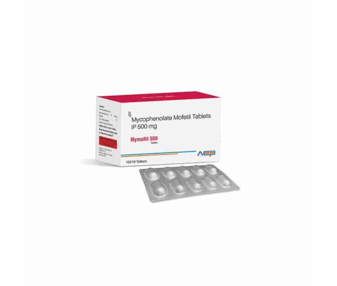 Composition : Mycophenolate Mofetil 500 Mg Packing : 10*10 Type : Alu Alu Detail:-Mymoflit 500 immunosuppressant tablet for transplant support. From Asto Care Pharma.