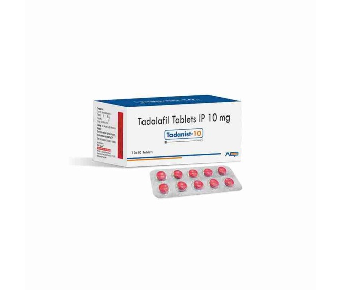 Composition : Tadalafil 10 Mg Packing : 10*10 Type : Blister Detail:-Tadanist 10 contains tadalafil 10 mg to support erectile function and improve performance. Trusted quality from Asto Care Pharma.