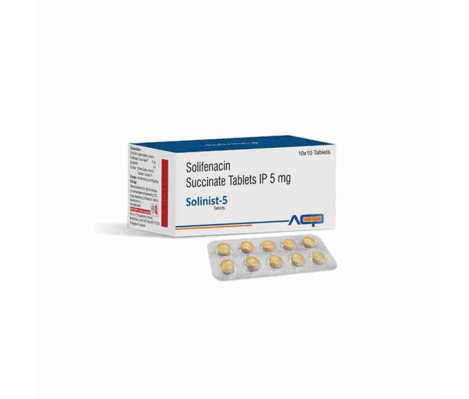 Composition :Solifenacin 5 Mg Packing : 10*10 Type : Blister Detail:-Solinist 5 contains tadalafil 5 mg to support erectile function and improve performance. Trusted quality from Asto Care Pharma.