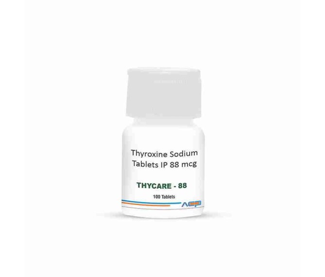 Composition : Thyroxine 88 Mcg Packing : 1*100 Type : Hdpe Bottle Detail:-Thycare 88 contains levothyroxine 88 mcg for thyroid hormone support in hypothyroidism. Quality you can trust from Asto Care Pharma.