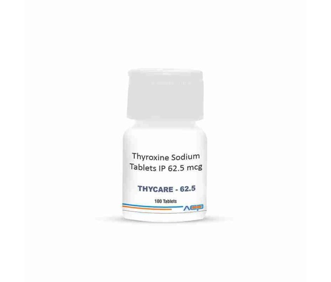 Composition : Thyroxine 62.5 Mcg Packing : 1*100 Type : Hdpe Bottle Detail:-Thycare 62.5 contains levothyroxine 62.5 mcg for thyroid hormone support in hypothyroidism. Trusted quality from Asto Care Pharma.
