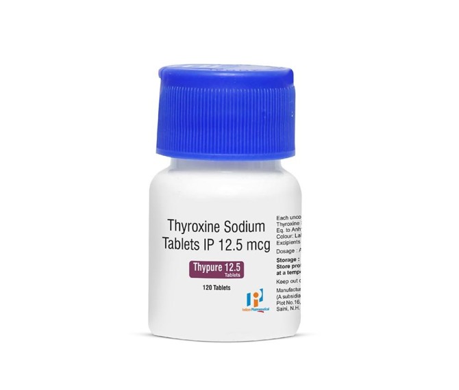 Composition : Thyroxine 12.5 Mcg Manufacturing From Akums Packing : 1*120 Type : Hdpe Bottle Detail:-Thypure 12.5 (Levothyroxine 12.5 mcg) tablets by Indizen Pharma are thyroid hormone replacement medicine used to treat hypothyroidism (underactive thyroid) and help normalize thyroid function and metabolism.