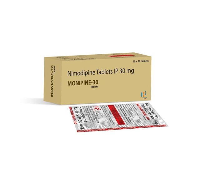 Composition : Nimodipine 30 Mg Packing : 10*10 Type : Strip Packing Detail:-Monipine 30 (Nimodipine 30 mg) capsules by Indizen Pharma are a calcium channel blocker used to improve neurological outcomes and help prevent vasospasm following subarachnoid hemorrhage