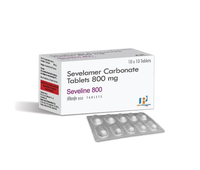 Composition : Sevelamer 800 Mg Packing : 10*10 Type : Alu Alu Detail:-Seveline 800 (Sevelamer 800 mg) tablets by Indizen Pharma are phosphate‑binding tablets used to manage high serum phosphate levels (hyperphosphatemia) in chronic kidney disease patients, including those on dialysis