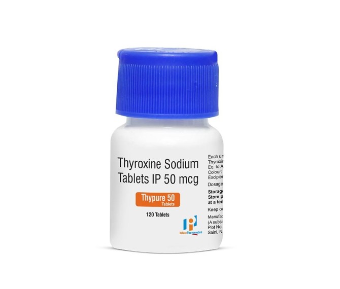 Composition : Thyroxine 50 Mcg Manufacturing From Akums Packing : 1*120 Type : Hdpe Bottle Detail:-Thypure 50 (Levothyroxine 50 mcg) tablets by Indizen Pharma are synthetic thyroid hormone replacement medicine used to treat hypothyroidism (underactive thyroid) and help normalize metabolism and thyroid function.