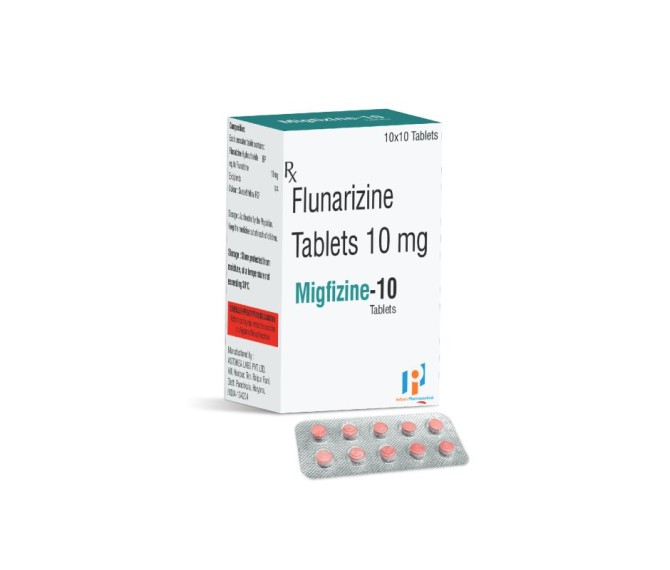 Composition : Flunarizine 10 Mg Packing : 10*10 Type : Blister Detail:-Migfizine‑10 (Flunarizine 10 mg) tablets by Indizen Pharma are used for the prevention of migraine and related vestibular disorders