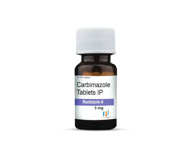 Composition : Carbimazole 5 Mg Packing : 1*100 Type : Hdpe Bottle Detail:-Racbizole 5 (Carbimazole 5 mg) tablets by Indizen Pharma are antithyroid medicines used to manage hyperthyroidism by reducing excess thyroid hormone production.