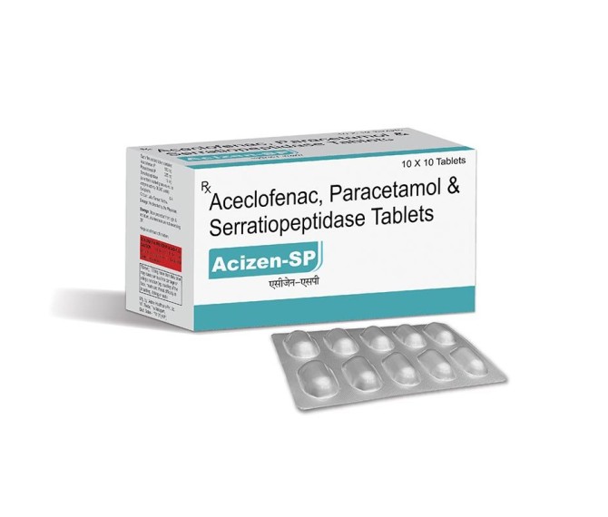 ACECLOFENAC 100MG + PARACETAMOL 325MG+SERRATIOPEPTIDASE 15MG FILM COTED ALU ALU PACK TAB.